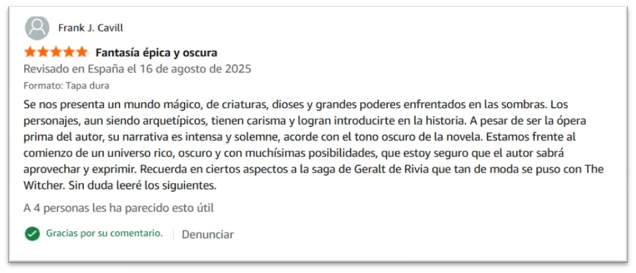 Si has leído cualquiera de mis libros puedes dejar tu reseña, creando una comunidad activa que enriquece la experiencia de la saga con distintas perspectivas y valoraciones.